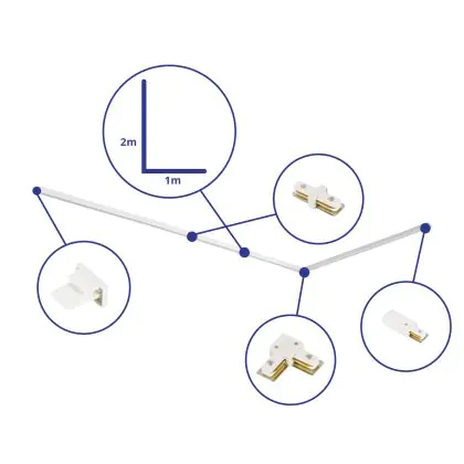 Rail Set 1-Fase L 1 x 2 Meter Wit | incl. Eindkap, Voedingsconnector en L -Verbindingsstuk